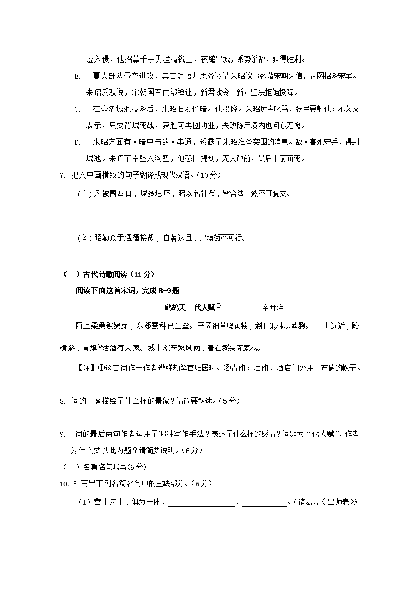 【文档预览】 无忧考网整理发布2009年海南高考语文试题及答案(Word版),前五页预览如下: