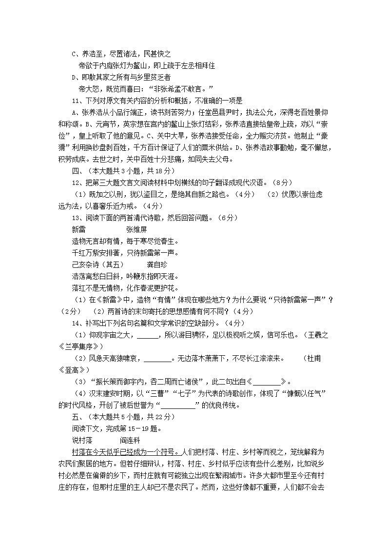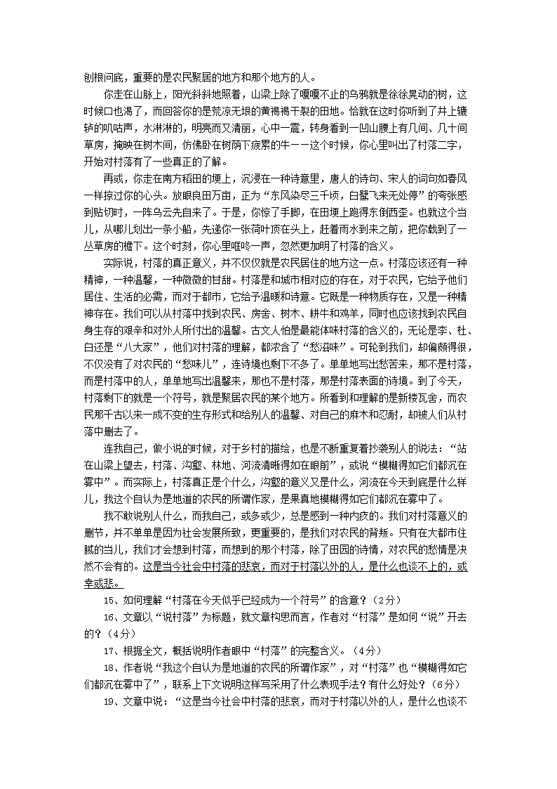 【文档名称】 2006年重庆高考语文真题及答案(Word版).doc
