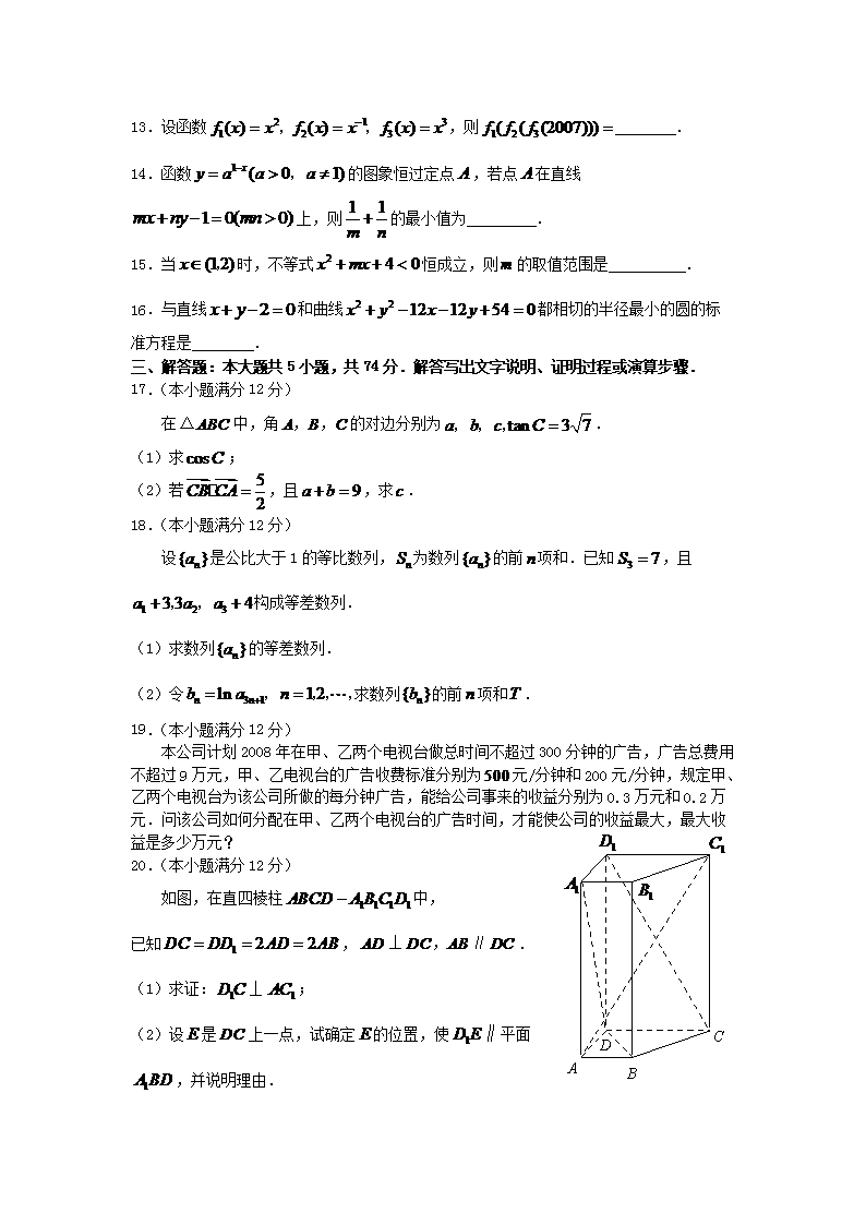 【文档预览】 无忧考网整理发布2007年山东高考文科数学真题及答案(Word版),前五页预览如下: