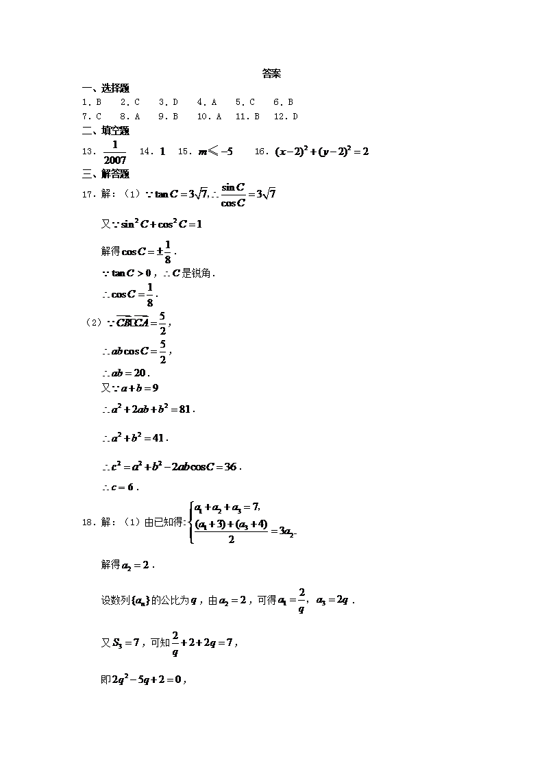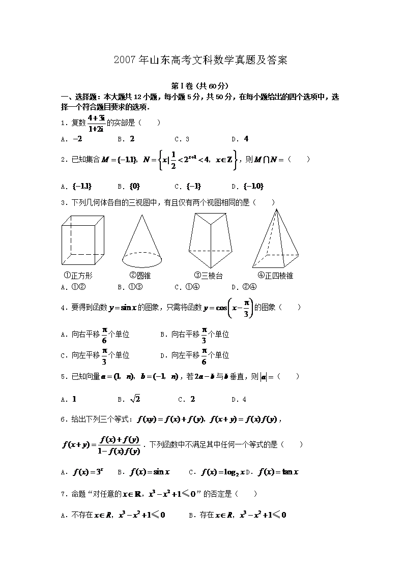 【文档名称】 2007年山东高考文科数学真题及答案(Word版).doc