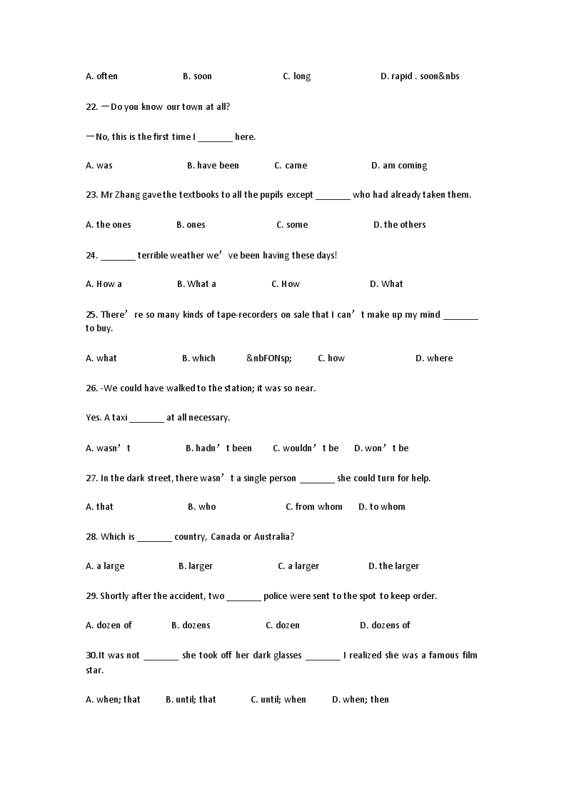 【文档名称】 1992年江苏高考英语真题及答案(Word版).doc