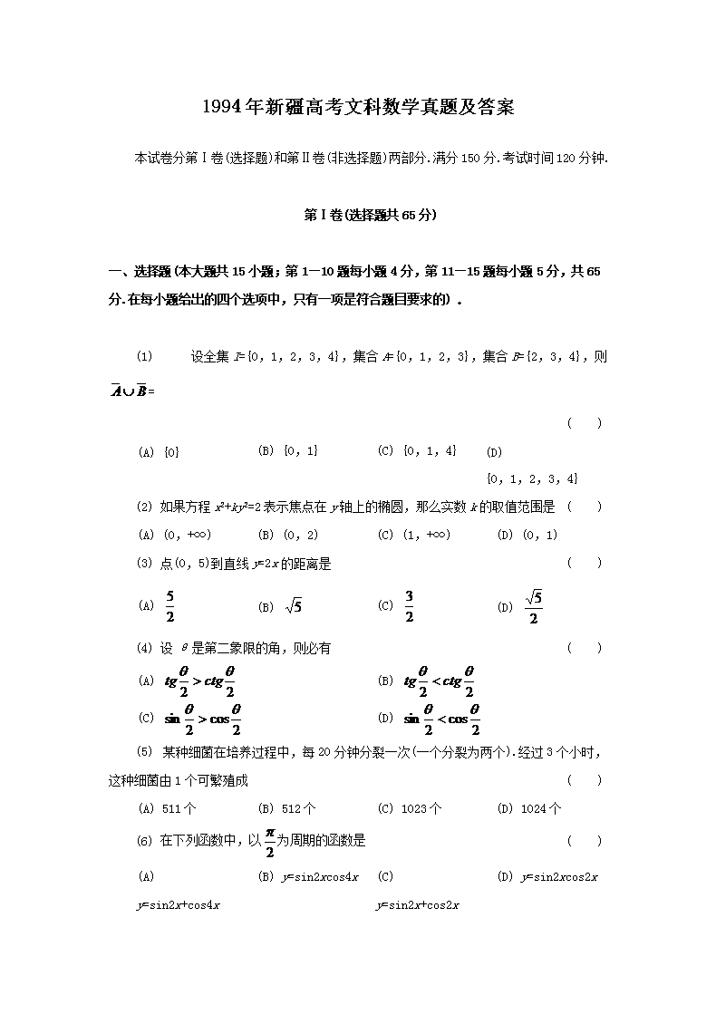 【文档预览】 无忧考网整理发布1994年新疆高考文科数学真题及答案(Word版),前五页预览如下: