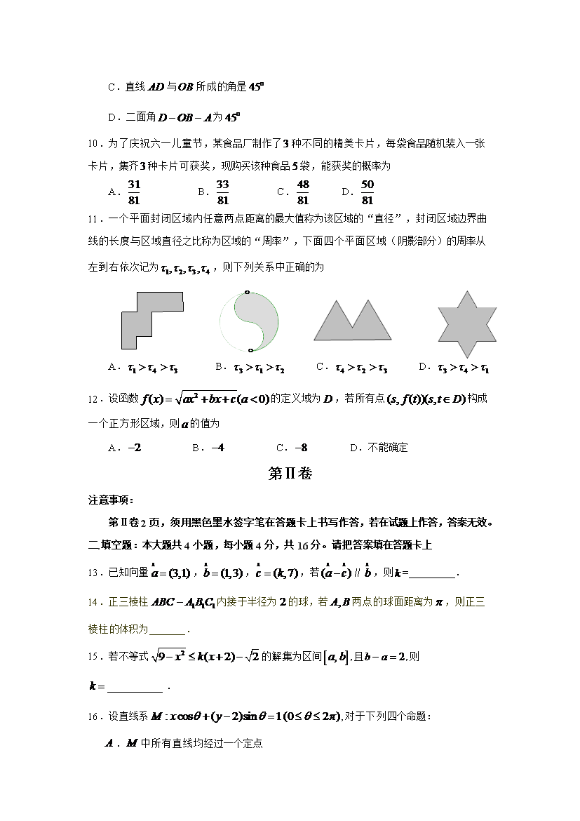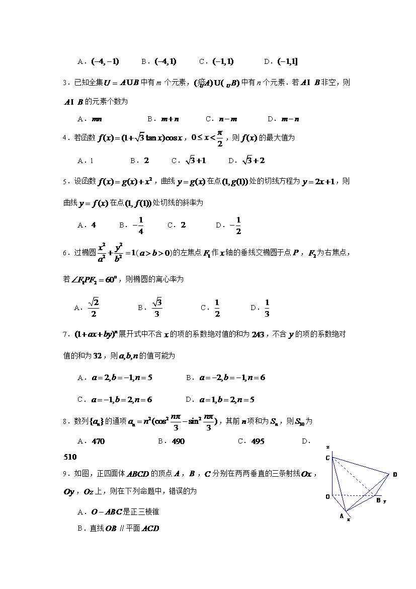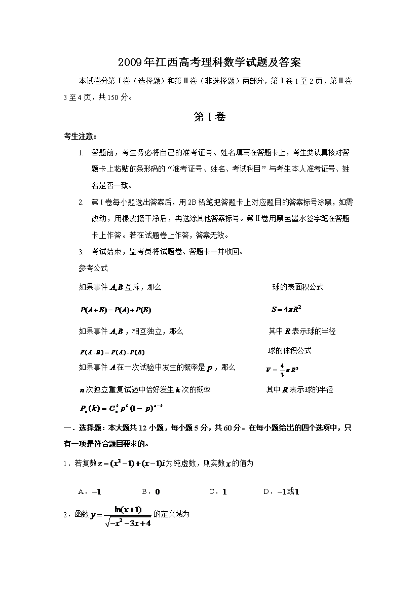 【文档名称】 2009年江西高考理科数学试题及答案(Word版).doc