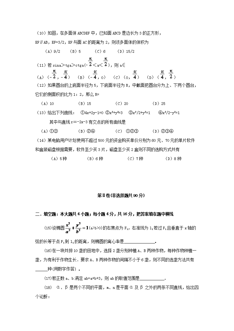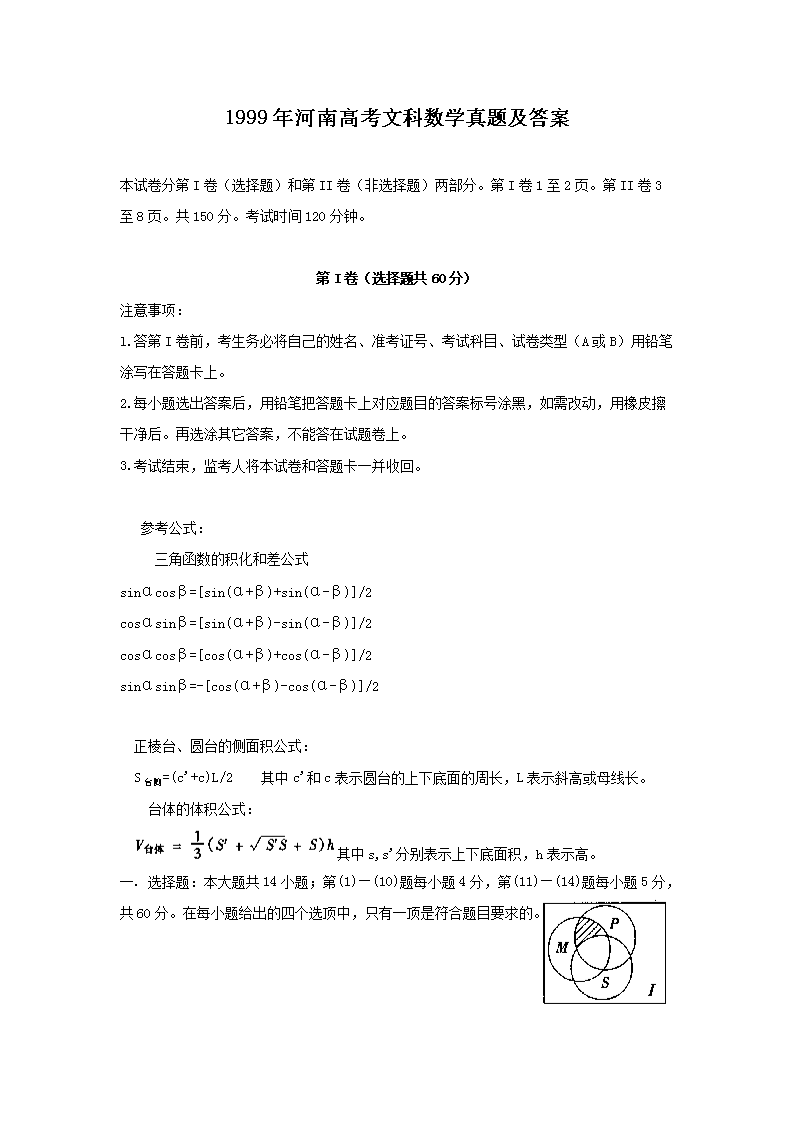 【文档预览】 无忧考网整理发布1999年河南高考文科数学真题及答案(Word版),前五页预览如下: