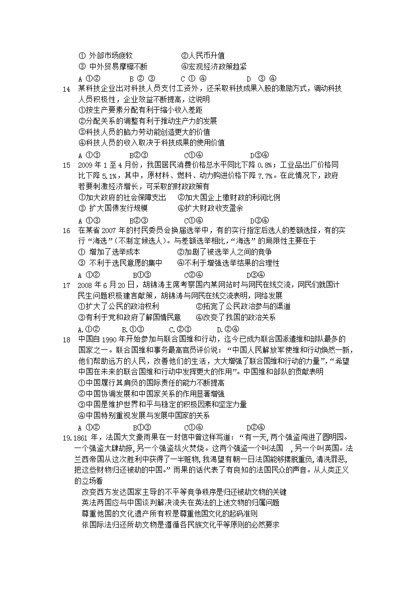 【文档名称】 2009年辽宁高考文综试题及答案(Word版).doc
