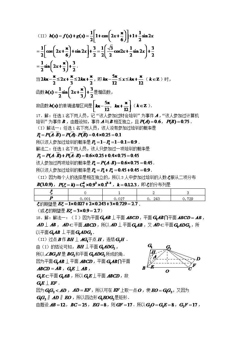 【文档预览】 无忧考网整理发布2007年湖南高考理科数学真题及答案(Word版),前五页预览如下:
