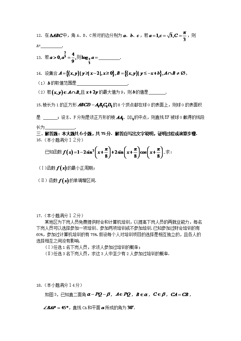 【文档预览】 无忧考网整理发布2007年湖南高考文科数学真题及答案(Word版),前五页预览如下: