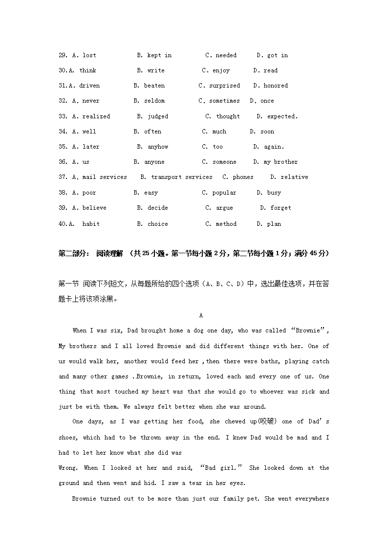 【文档名称】 2010年云南高考英语真题及答案(Word版).doc