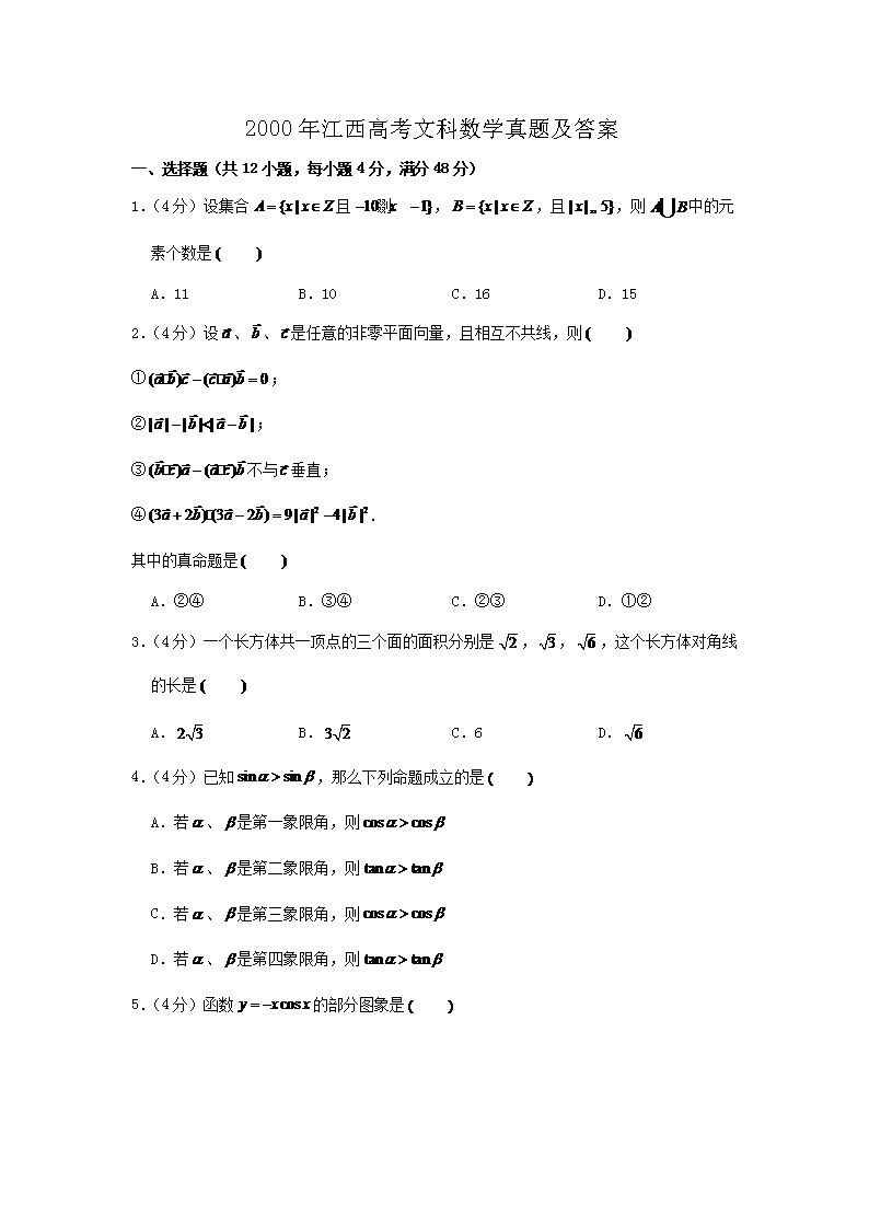 【文档名称】 2000年江西高考文科数学真题及答案(Word版).doc