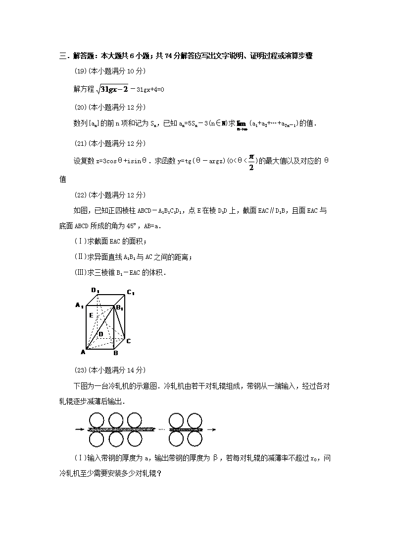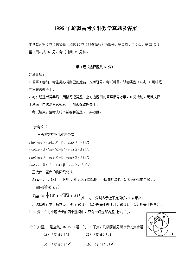 【文档预览】 无忧考网整理发布1999年新疆高考文科数学真题及答案(Word版),前五页预览如下: