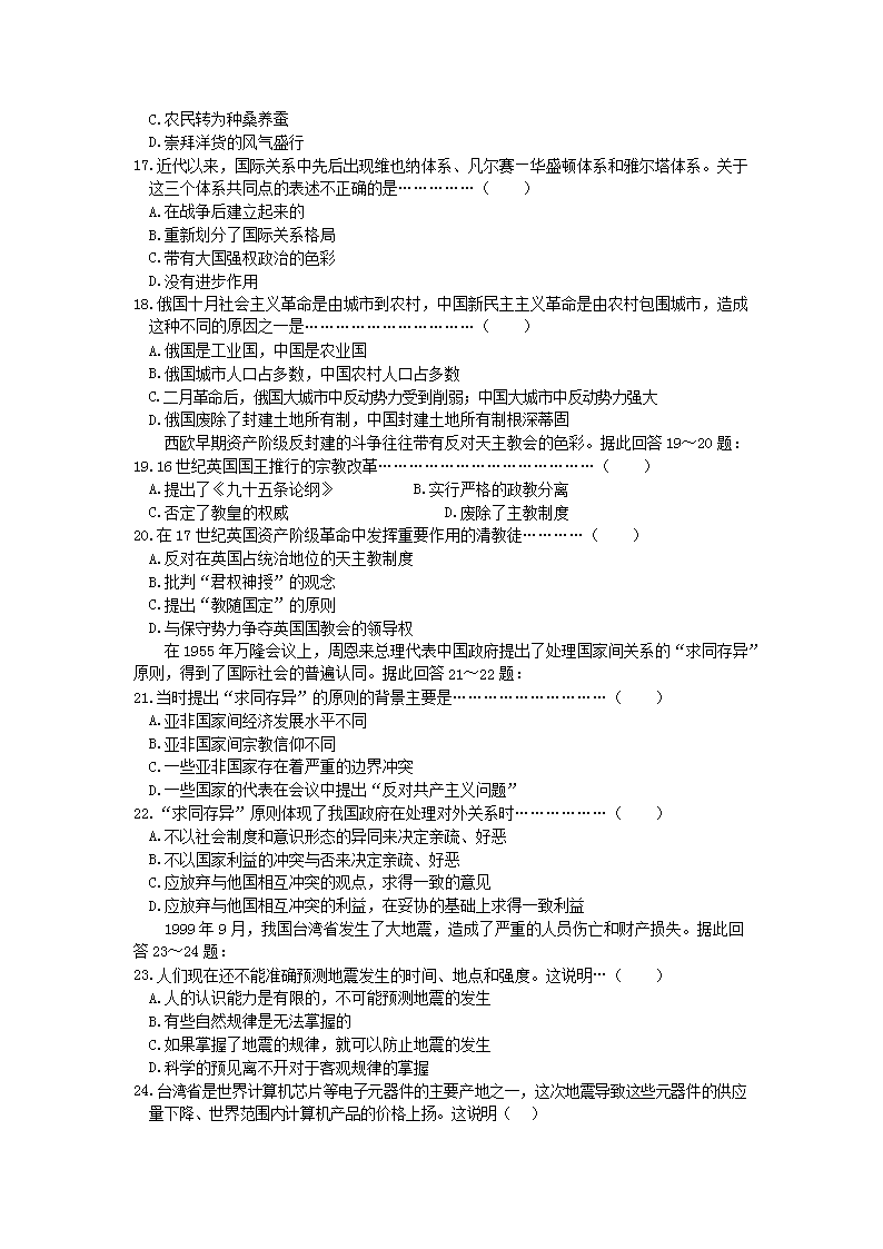 【文档名称】 2000年江苏高考文综真题及答案(Word版).doc