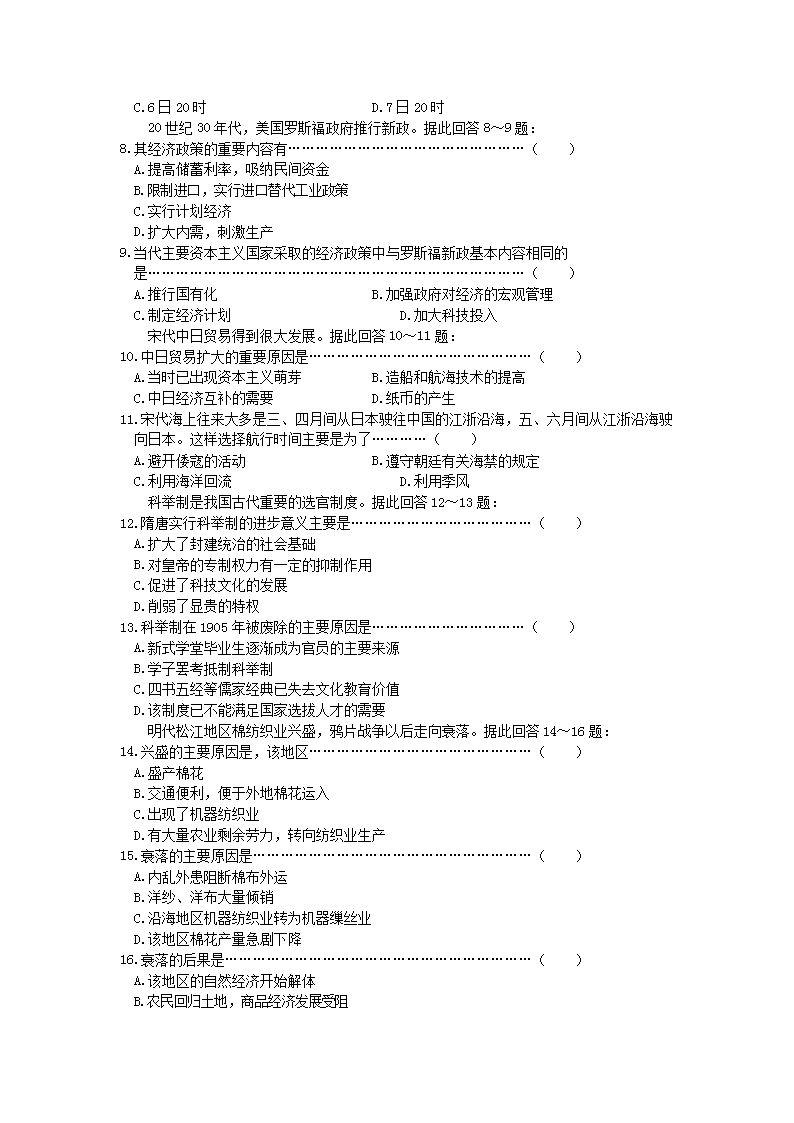 【文档预览】 无忧考网整理发布2000年江苏高考文综真题及答案(Word版),前五页预览如下: