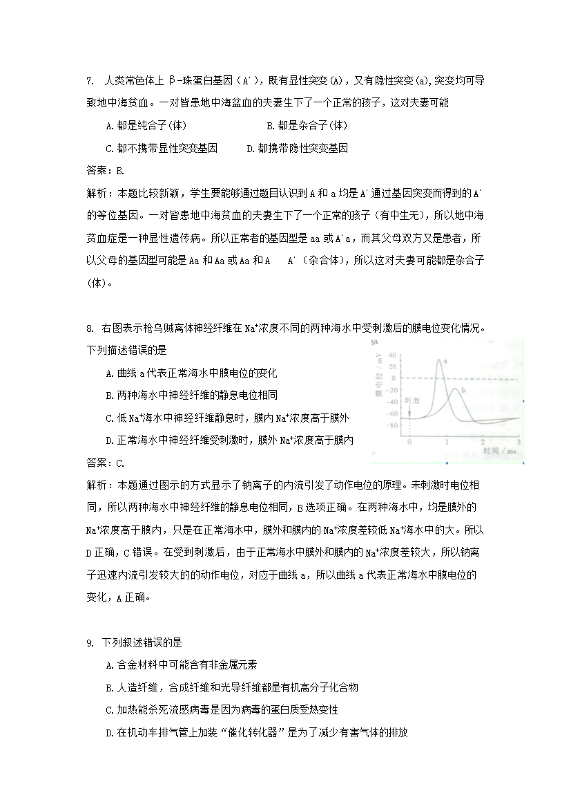 【文档预览】 无忧考网整理发布2009年山东高考理综试题及答案(Word版),前五页预览如下: