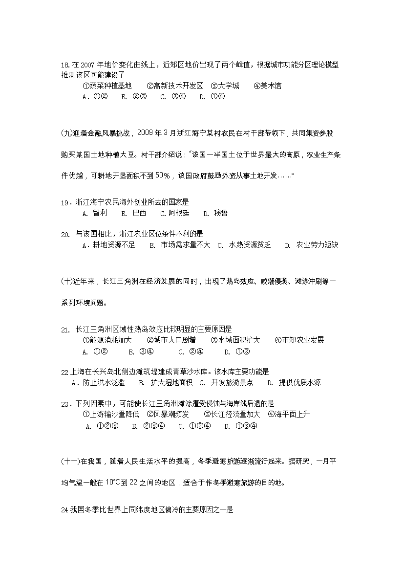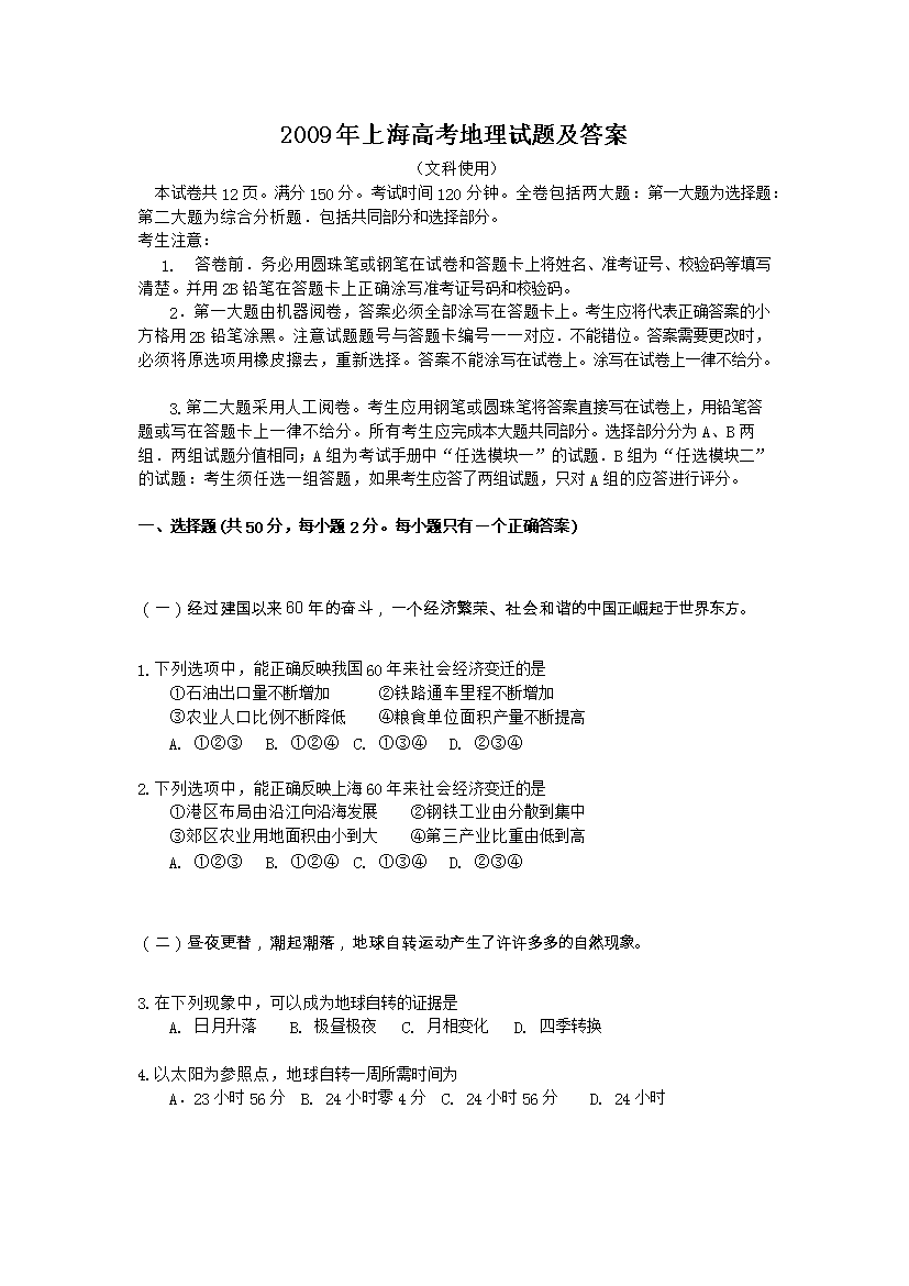 【文档名称】 2009年上海高考地理试题及答案(Word版).doc