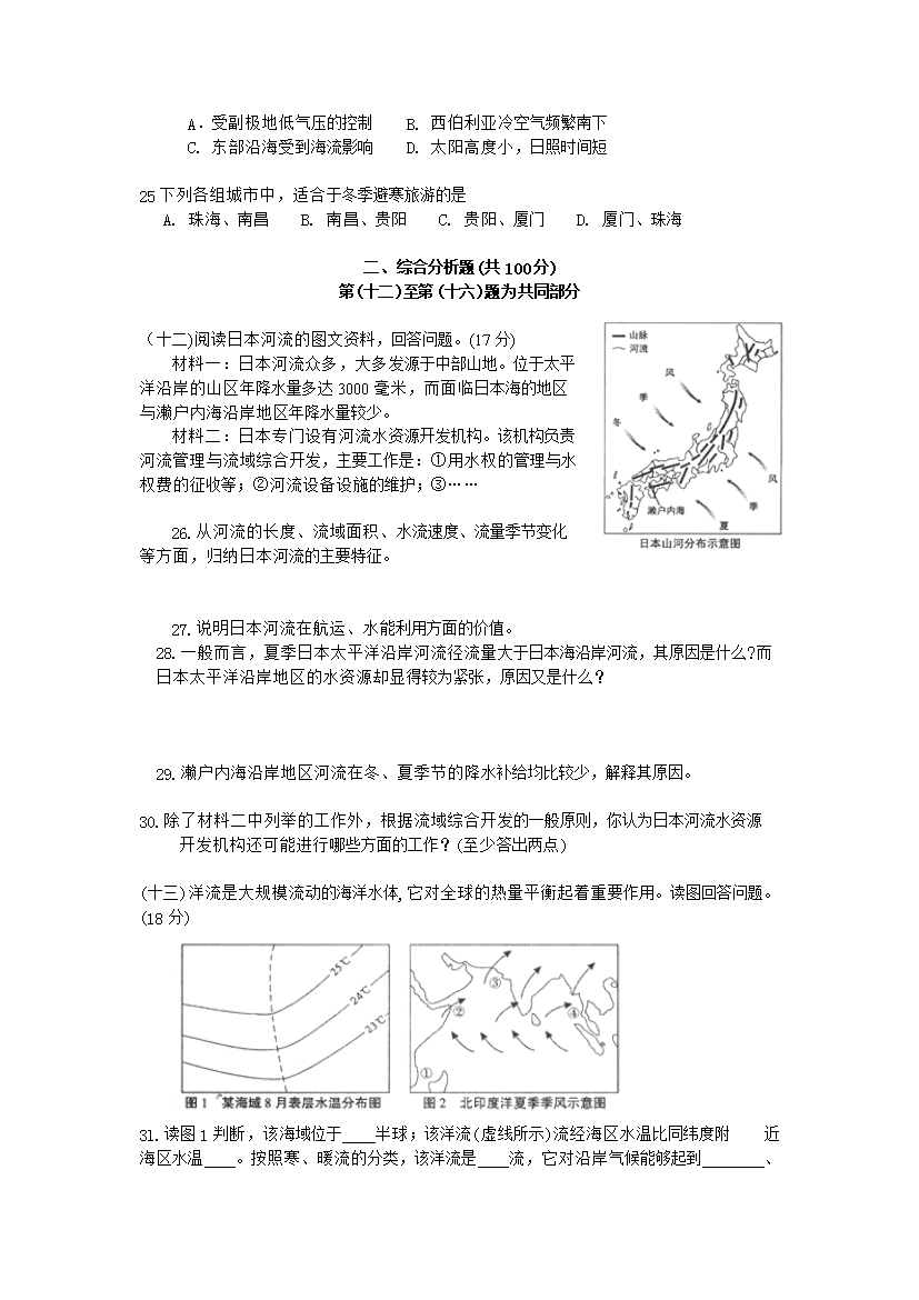 【文档预览】 无忧考网整理发布2009年上海高考地理试题及答案(Word版),前五页预览如下:
