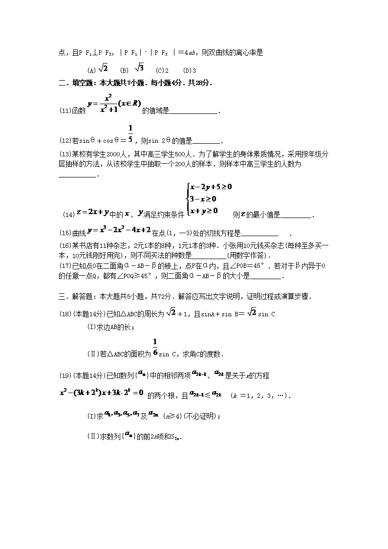 【文档名称】 2007年浙江高考文科数学真题及答案(Word版).doc
