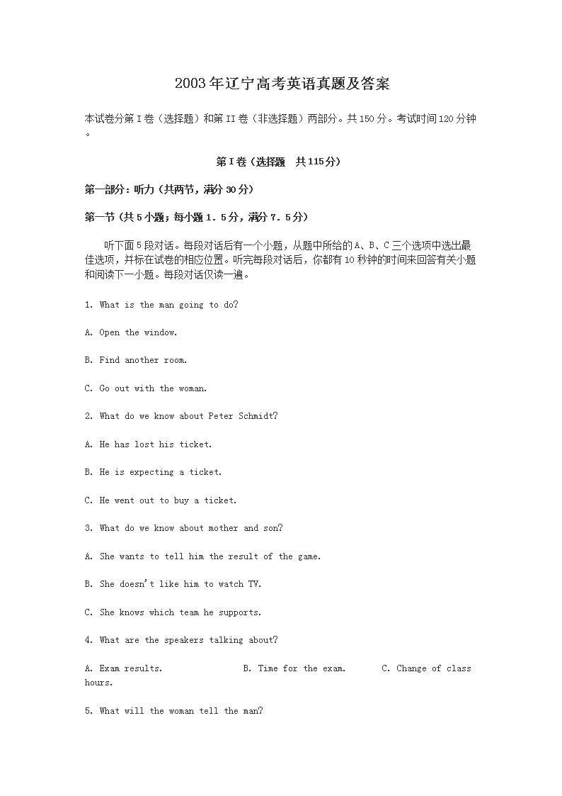 【文档名称】 2003年辽宁高考英语真题及答案(Word版).doc