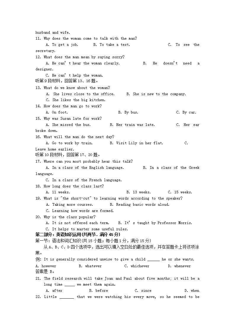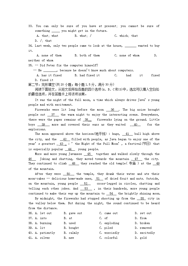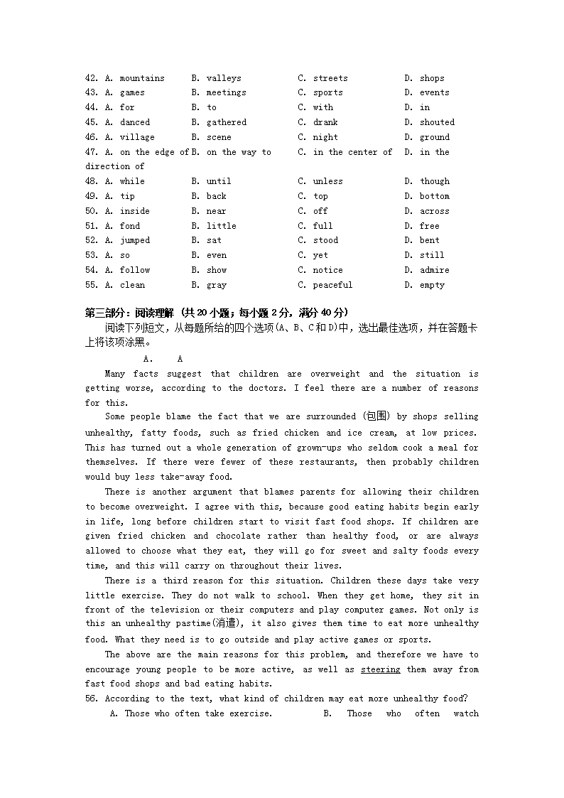 【文档预览】 无忧考网整理发布2007年安徽高考英语真题及答案(Word版),前五页预览如下: