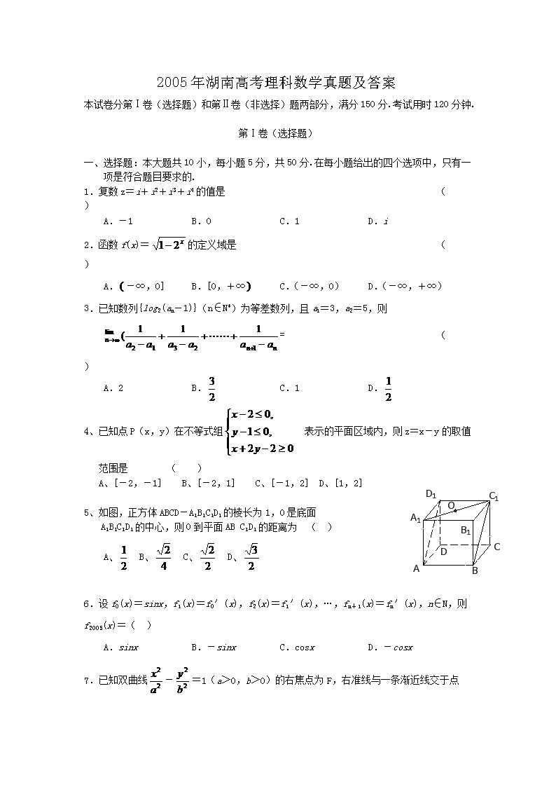 【文档名称】 2005年湖南高考理科数学真题及答案(Word版).doc