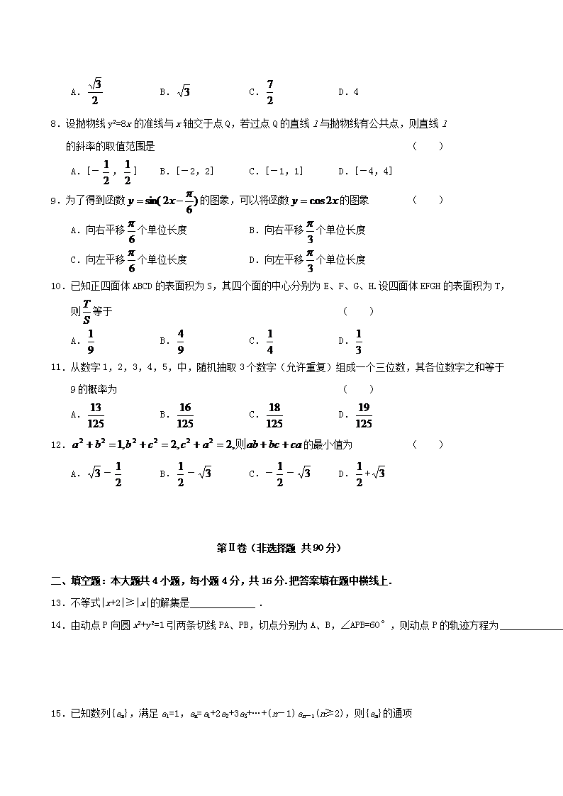 【文档名称】 2004年安徽高考理科数学真题及答案(Word版).doc