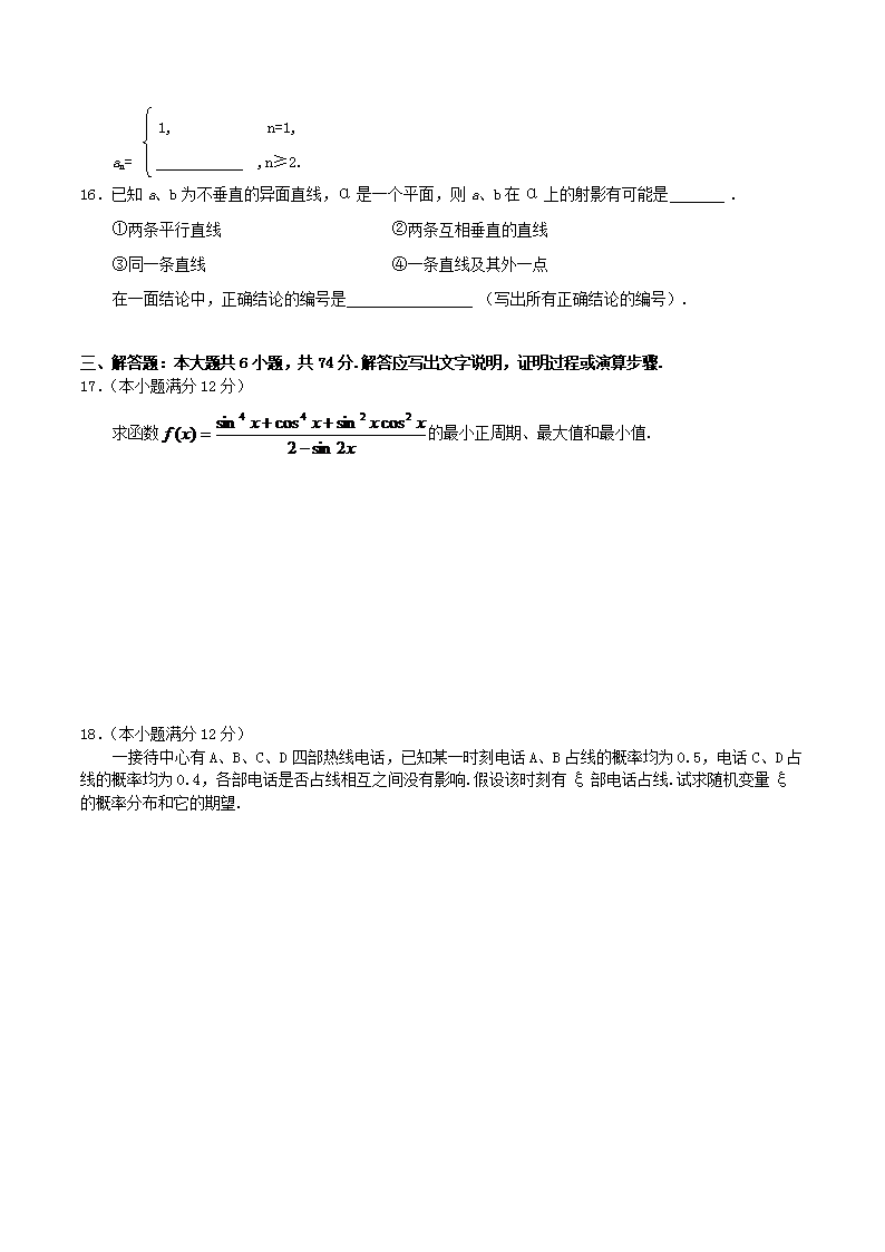 【文档预览】 无忧考网整理发布2004年安徽高考理科数学真题及答案(Word版),前五页预览如下:
