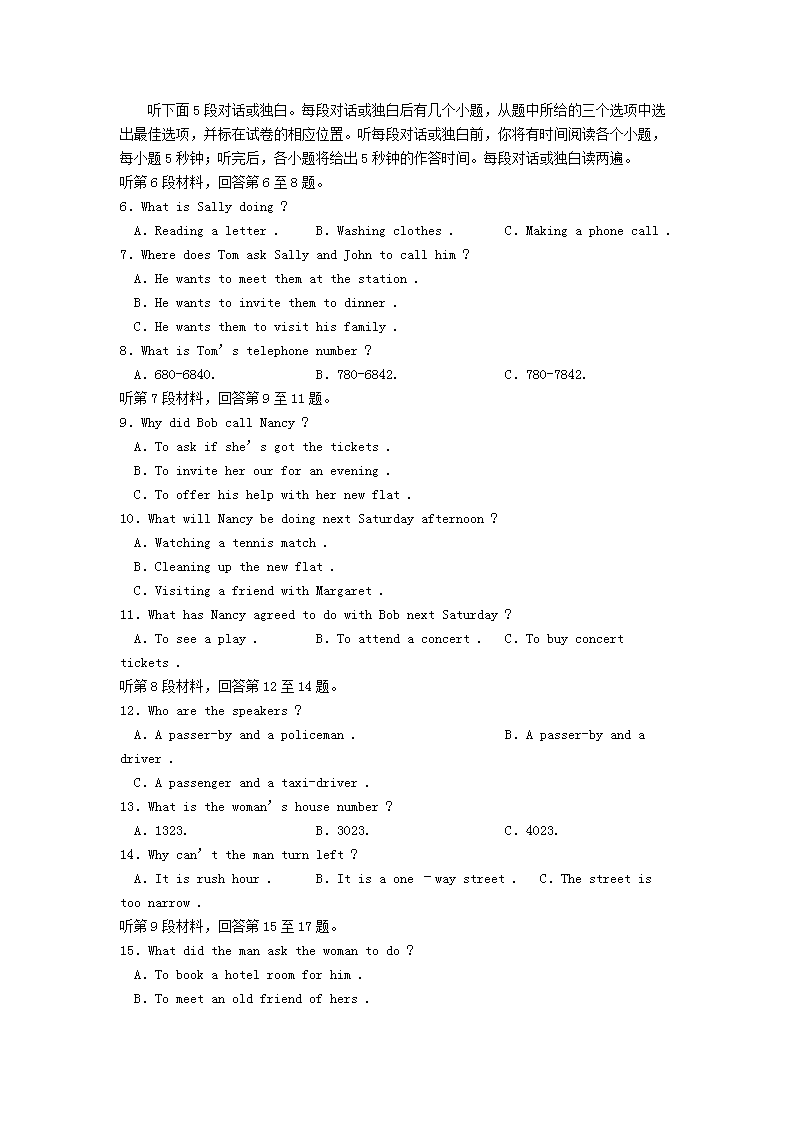 【文档预览】 无忧考网整理发布2001年山西高考英语真题及答案(Word版),前五页预览如下: