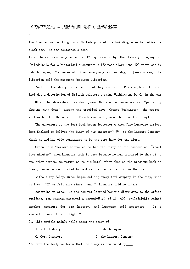 【文档名称】 1999年贵州高考英语真题及答案(Word版).doc