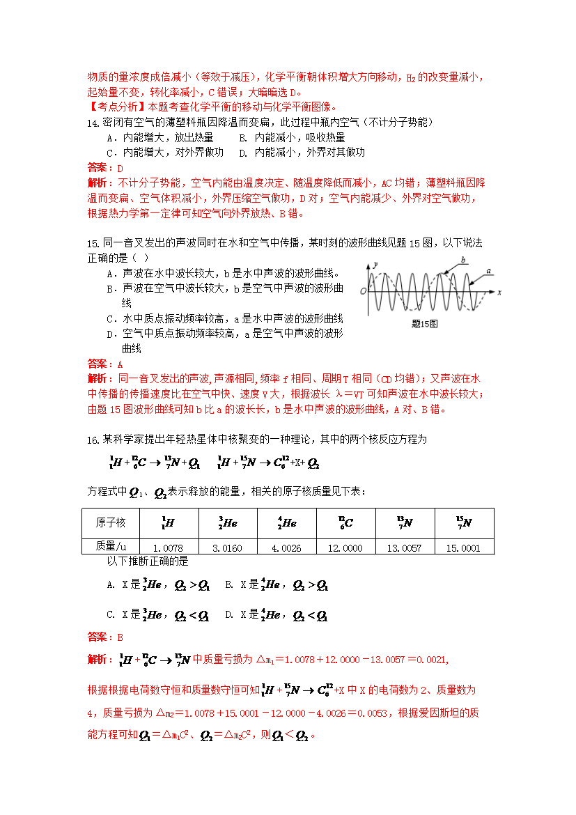 【文档名称】 2009年重庆高考理综试题及答案(Word版).doc