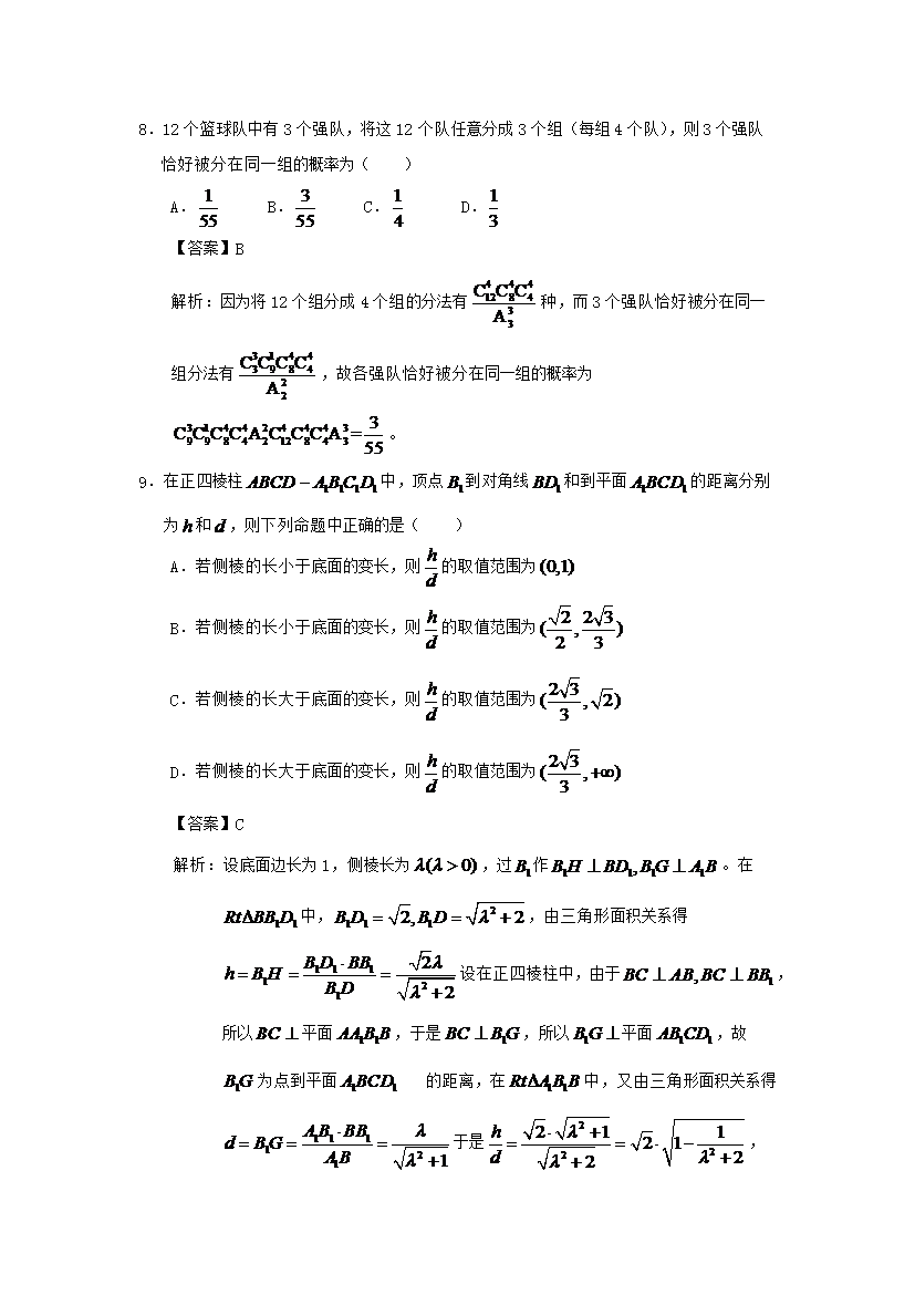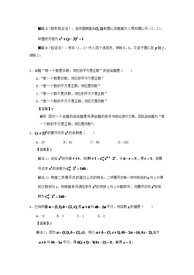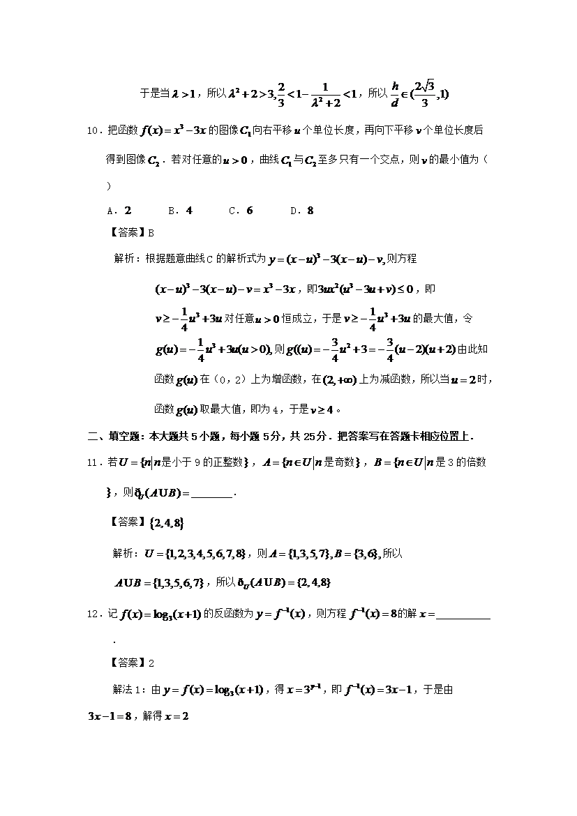 【文档名称】 2009年重庆高考文科数学试题及答案(Word版).doc