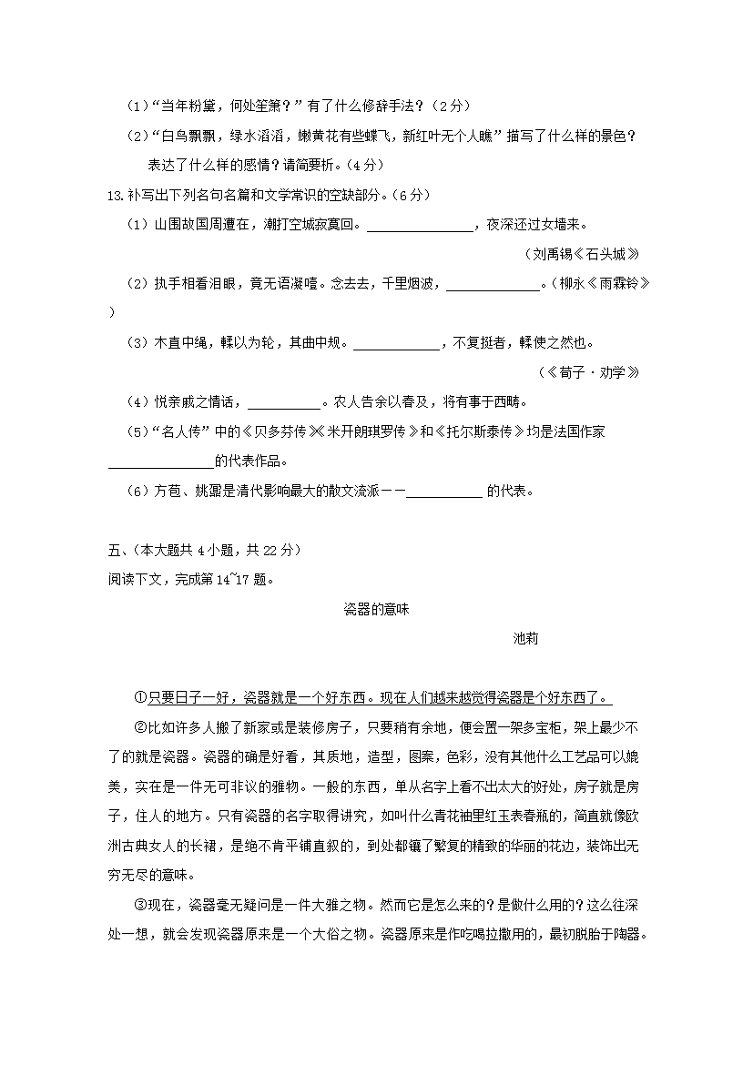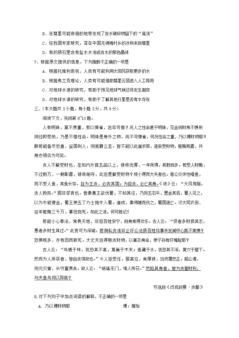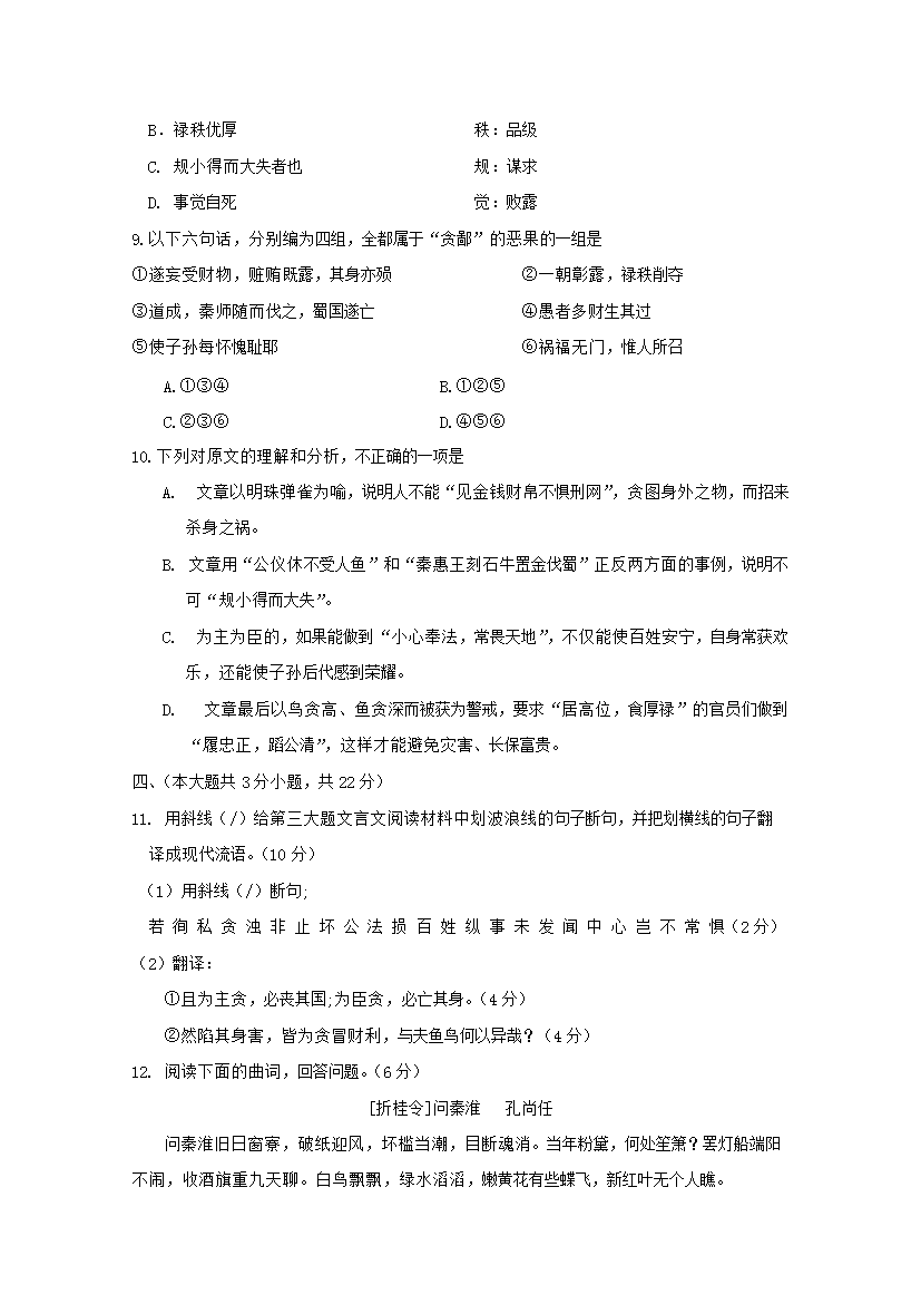 【文档名称】 2009年重庆高考语文试题及答案(Word版).doc