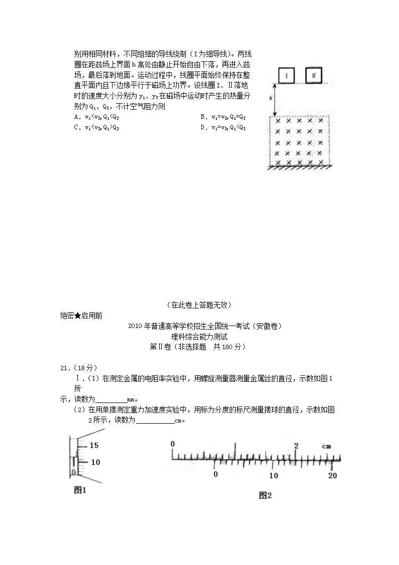 【文档名称】 2010年安徽高考理科综合真题及答案(Word版).doc