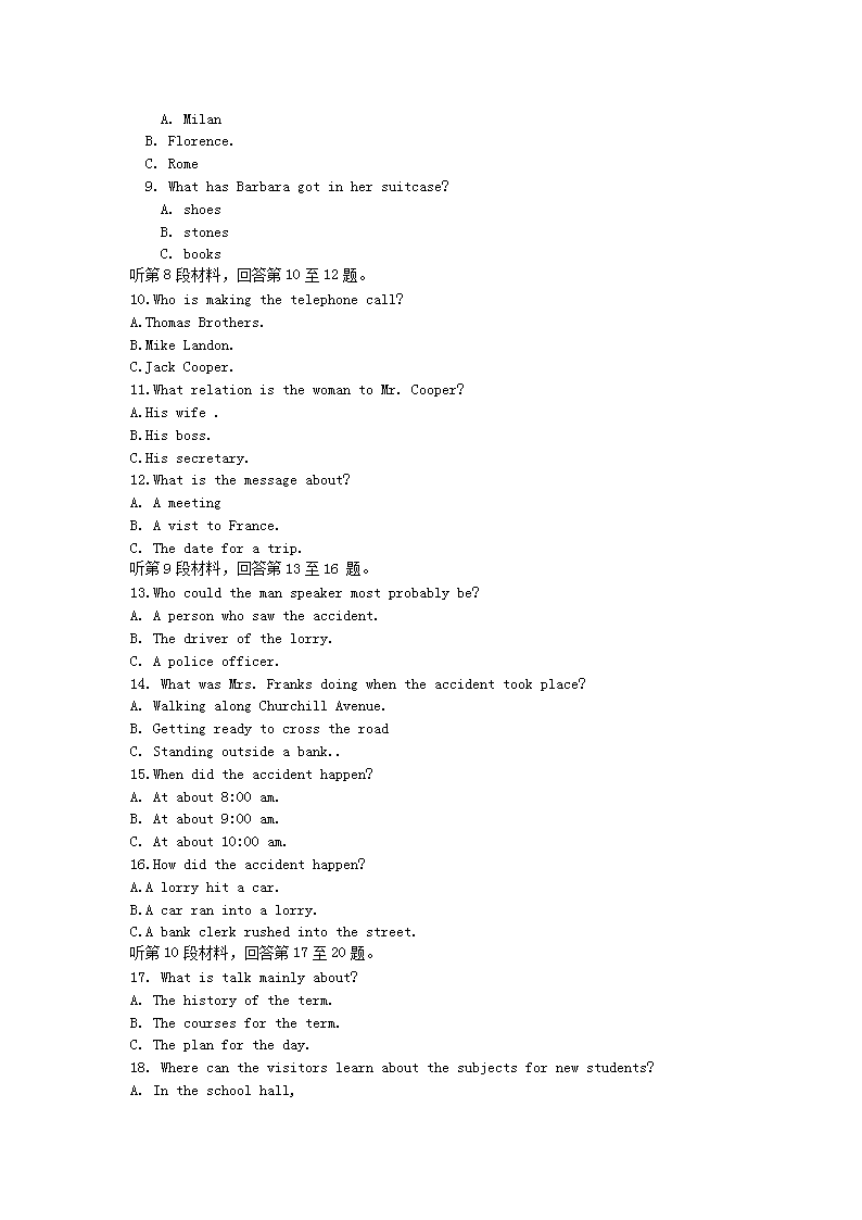 【文档名称】 2010年海南高考英语真题及答案(Word版).doc