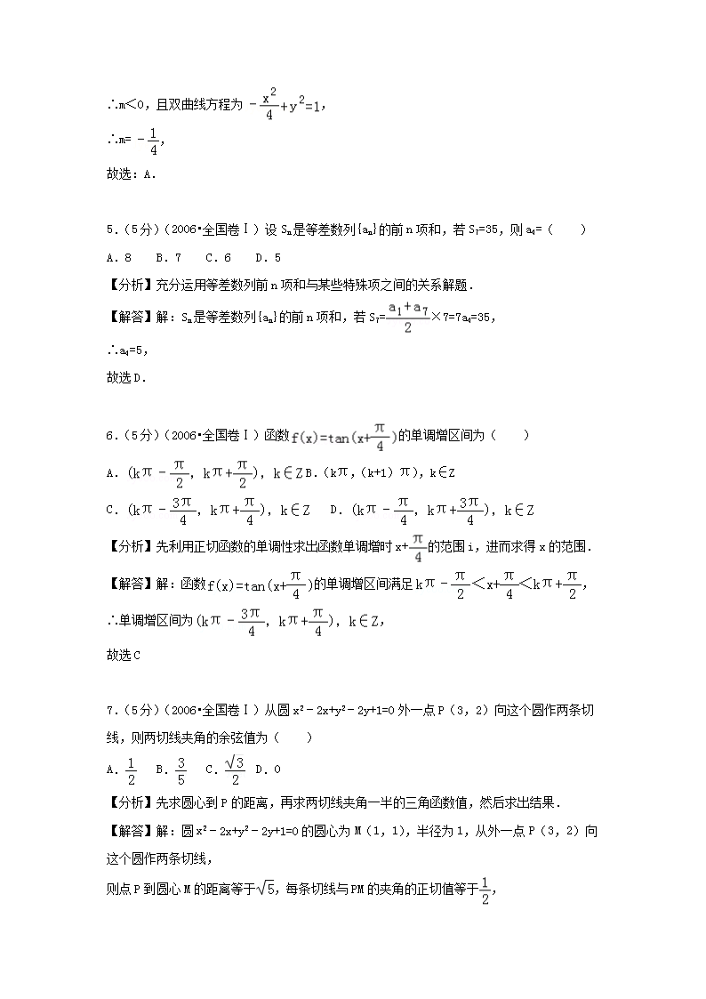 【文档名称】 2006年宁夏高考文科数学真题及答案(Word版).doc