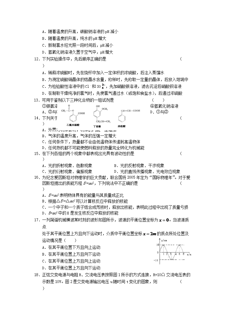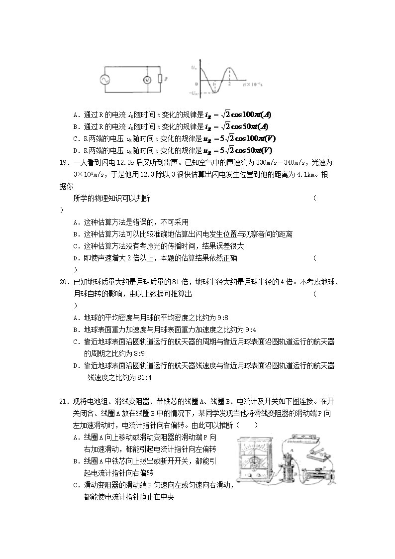【文档名称】 2005年北京高考理科综合真题及答案(Word版).doc