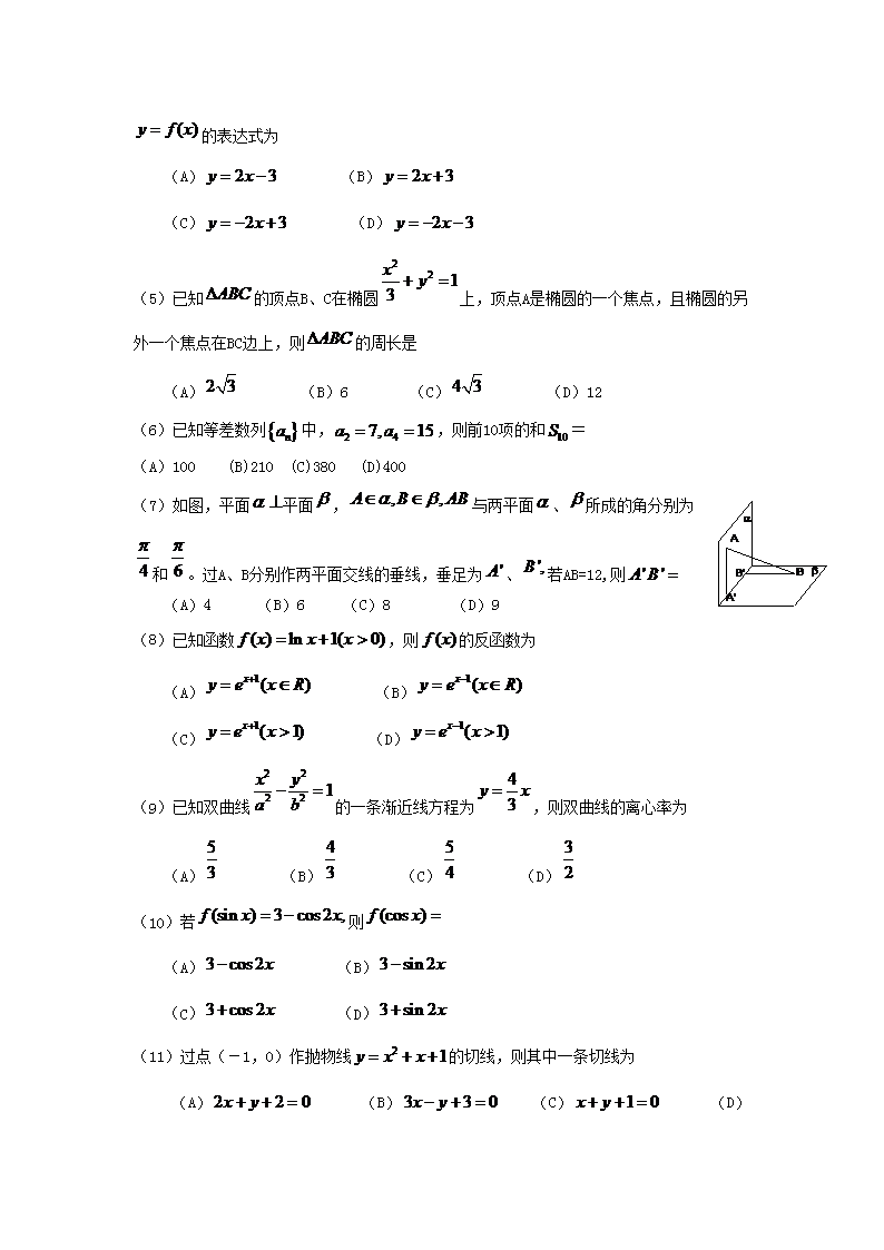 【文档名称】 2006年黑龙江高考文科数学真题及答案(Word版).doc