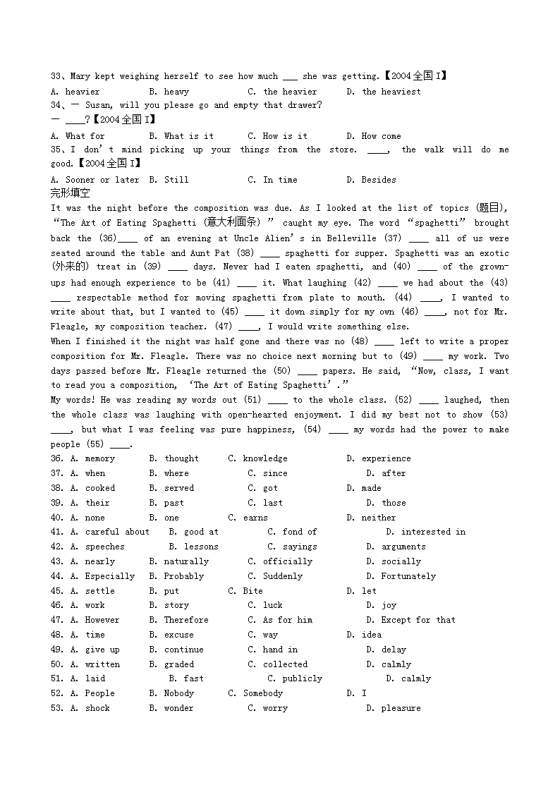 【文档预览】 无忧考网整理发布2004年山东高考英语真题及答案(Word版),前五页预览如下: