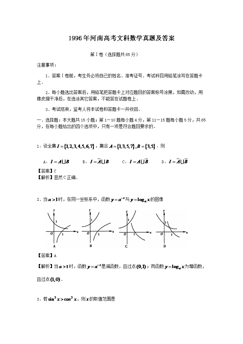 【文档预览】 无忧考网整理发布1996年河南高考文科数学真题及答案(Word版),前五页预览如下: