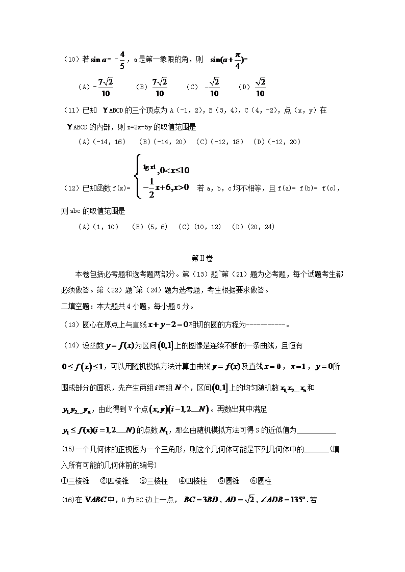 【文档名称】 2010年宁夏高考文科数学真题及答案(Word版).doc