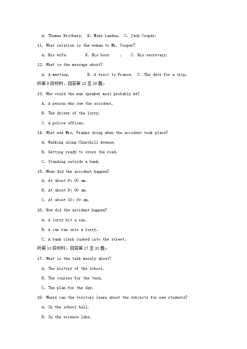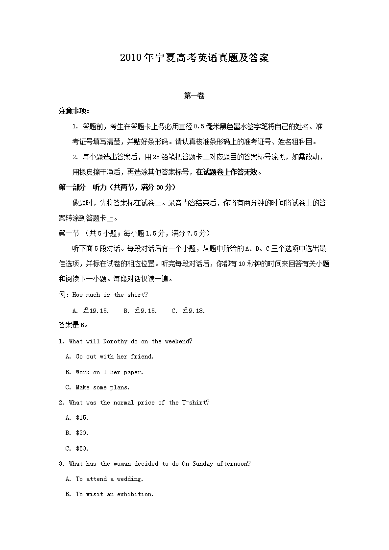 【文档预览】 无忧考网整理发布2010年宁夏高考英语真题及答案(Word版),前五页预览如下: