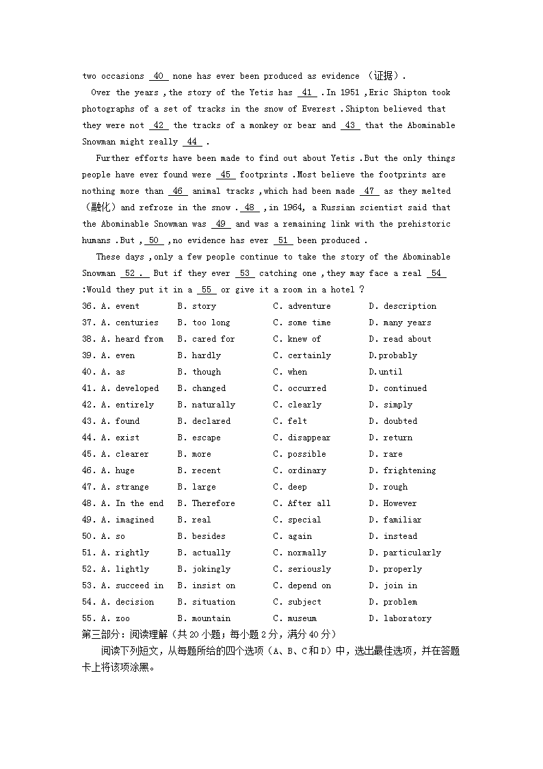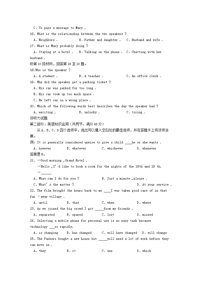 【文档预览】 无忧考网整理发布2001年云南高考英语真题及答案(Word版),前五页预览如下: