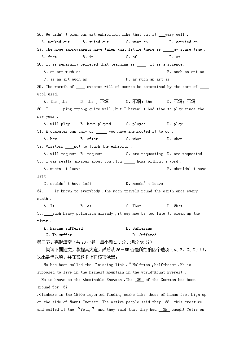 【文档名称】 2001年云南高考英语真题及答案(Word版).doc