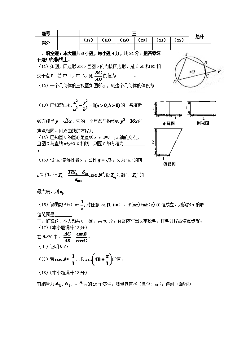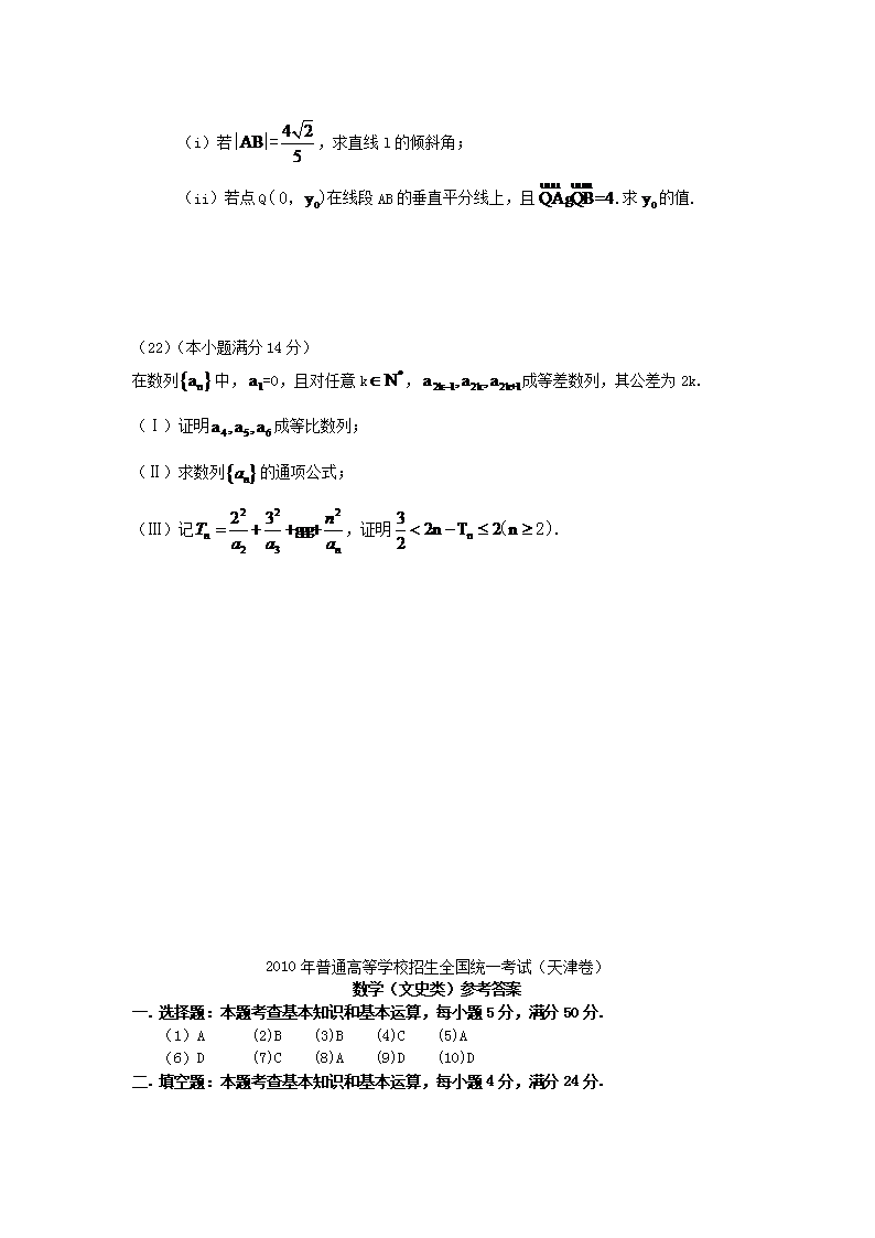 【文档名称】 2010年天津高考文科数学真题及答案(Word版).doc
