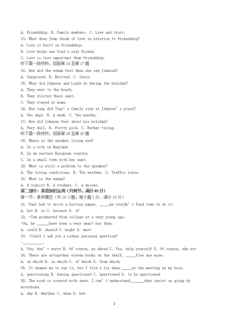 【文档预览】 无忧考网整理发布2004年吉林高考英语真题及答案(Word版),前五页预览如下: