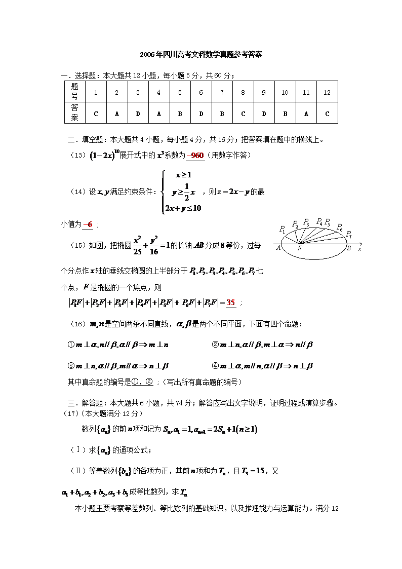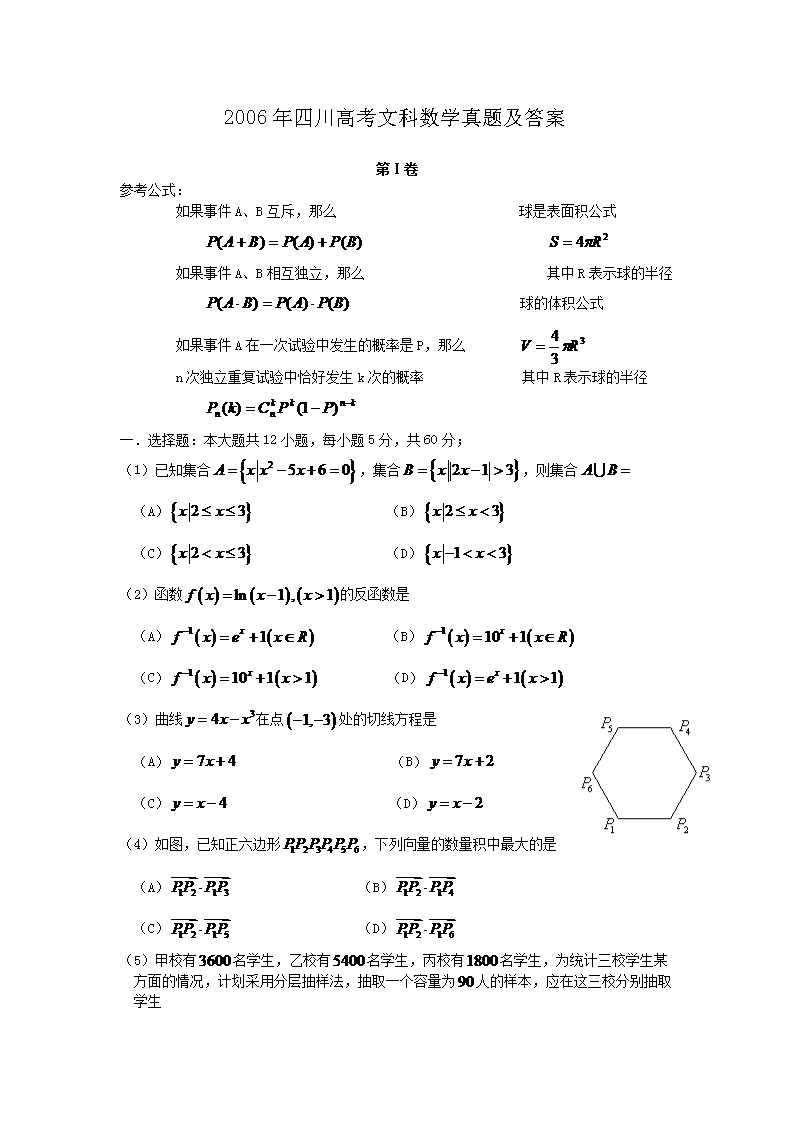 【文档名称】 2006年四川高考文科数学真题及答案(Word版).doc