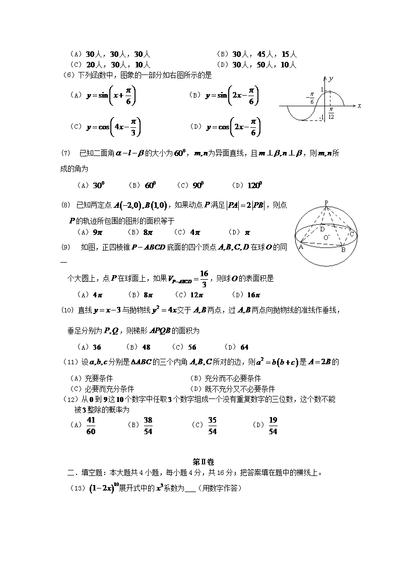 【文档预览】 无忧考网整理发布2006年四川高考文科数学真题及答案(Word版),前五页预览如下: