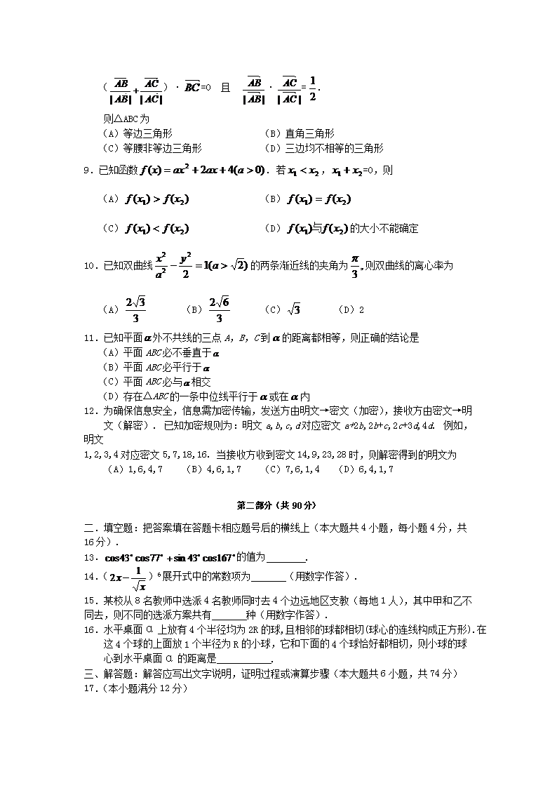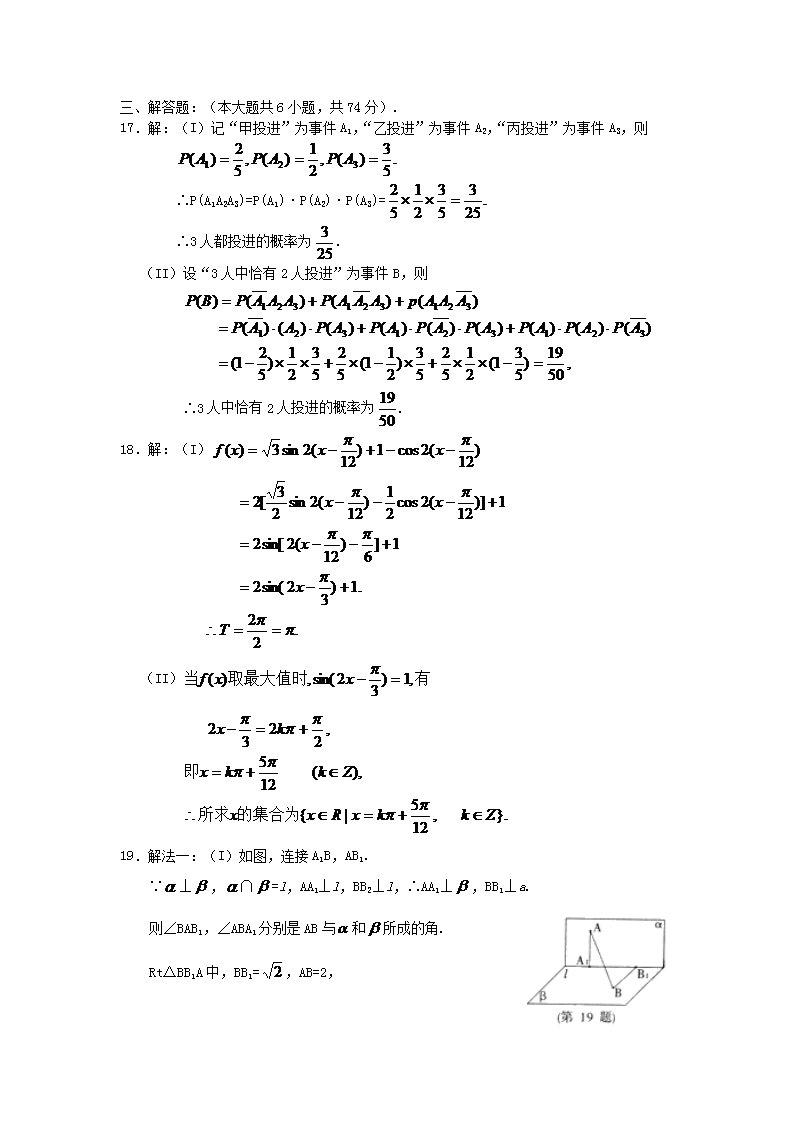 【文档预览】 无忧考网整理发布2006年陕西高考文科数学真题及答案(Word版),前五页预览如下: