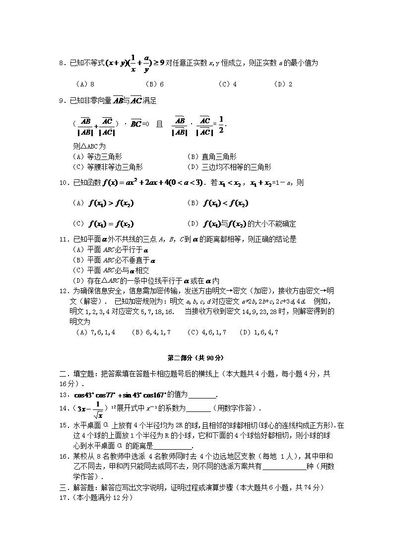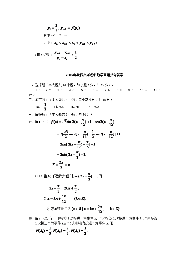 【文档预览】 无忧考网整理发布2006年陕西高考理科数学真题及答案(Word版),前五页预览如下: