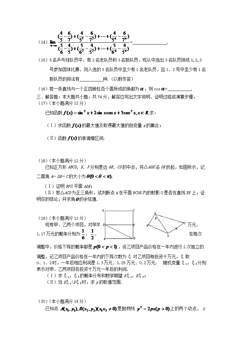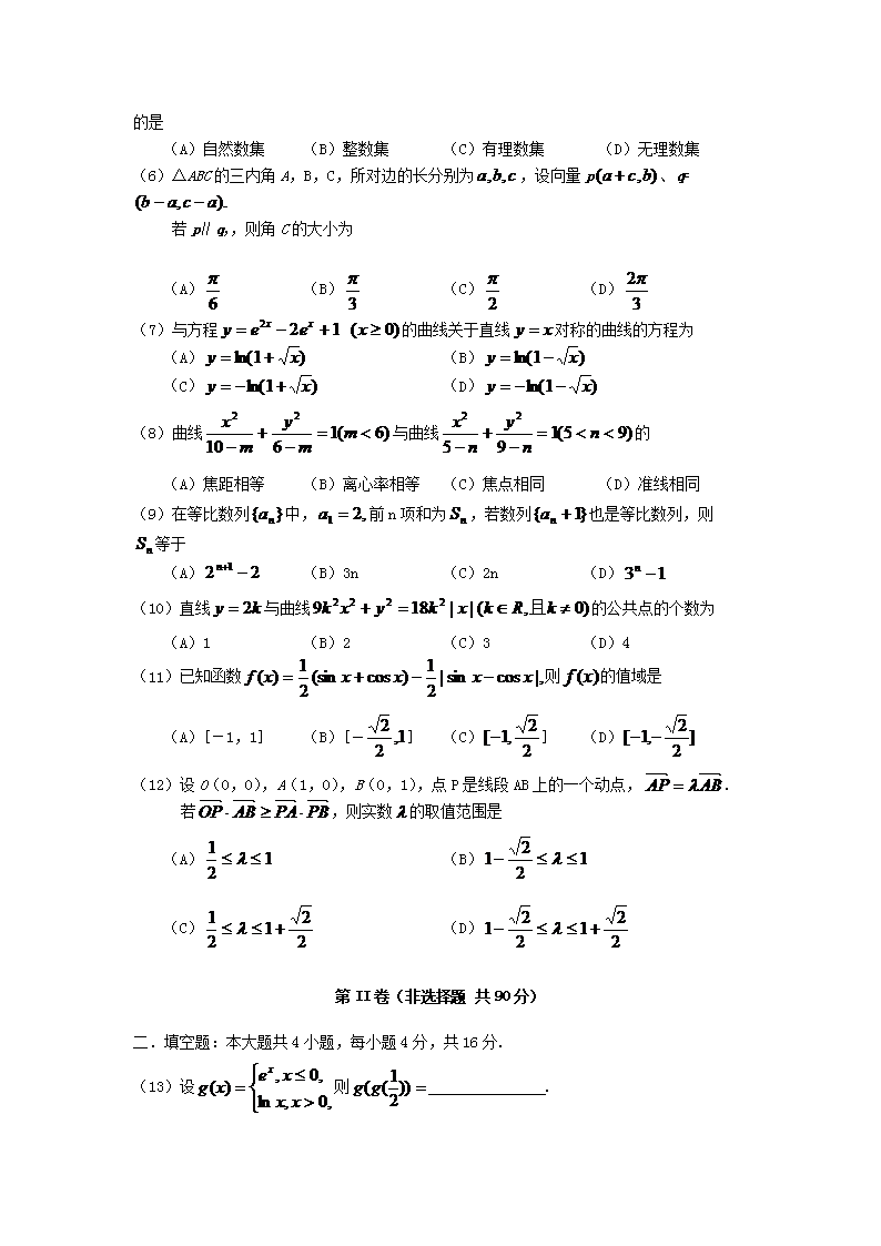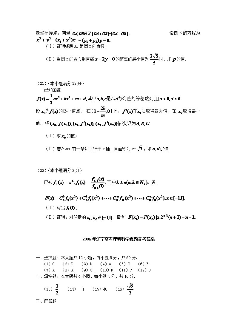 【文档名称】 2006年辽宁高考理科数学真题及答案(Word版).doc