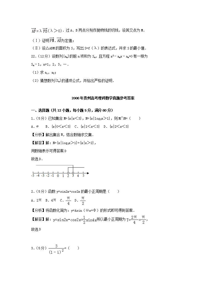 【文档名称】 2006年贵州高考理科数学真题及答案(Word版).doc