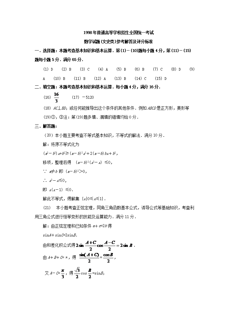 【文档预览】 无忧考网整理发布1998年四川高考文科数学真题及答案(Word版),前五页预览如下: